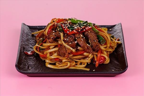 Лапша удон с говядиной в черном перечном соусе