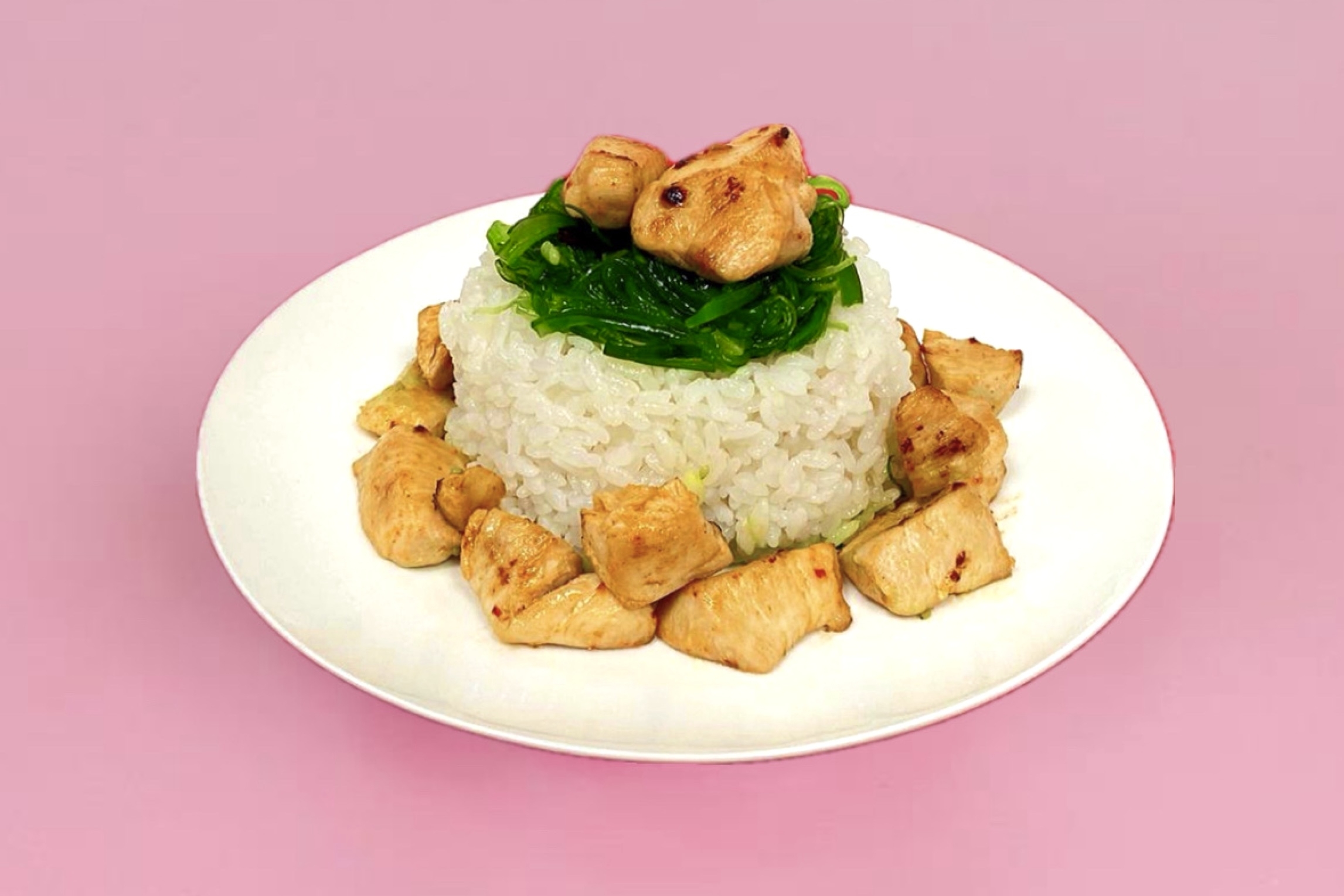 Рис, куриное мясо, чука, спайси соус