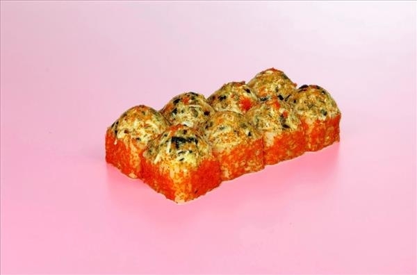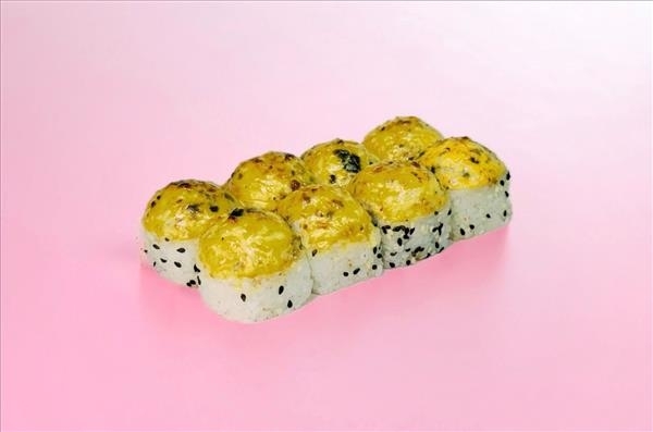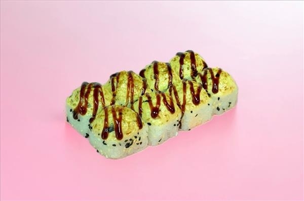 Рис, краб микс, омлет, угорь, сырный соус с икрой масаго,унаги соус, кунжут, нори.