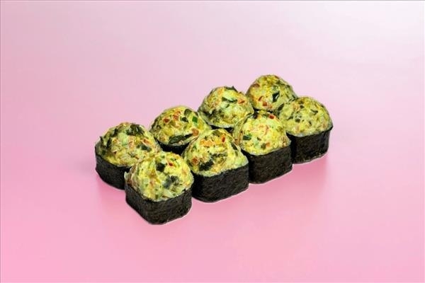 Рис, перец болгарский,огурец свежий , угорь, сливочный сыр,краб микс, спайси соус, нори.