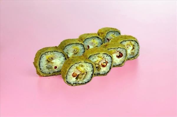 Рис, угорь, сыр творожный, курица копченная, перец чили, сыр чеддер, кляр, сухари, нори