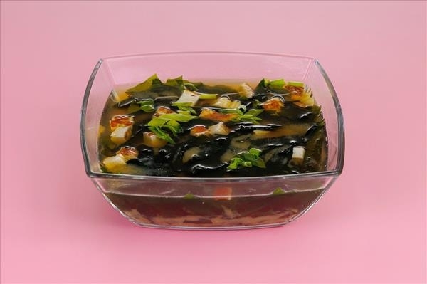 Мисо-бульон, водоросли вакаме, омлет (яйцо, соус тамаго, масло растительное), лук зеленый, кунжут